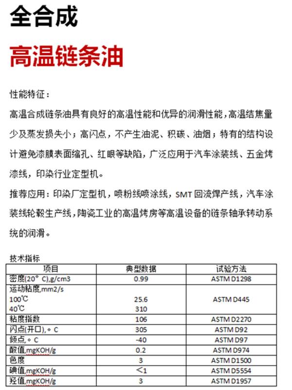廈門威馬工貿(mào)有限公司位于美麗的花園城市-廈門市同安區(qū),公司專營合成高溫油脂系列產(chǎn)品。產(chǎn)品分為:高溫鏈條油、高溫潤滑脂、高低溫潤滑脂等系列油品。廣泛應用于:定型機、噴涂/噴粉、巖棉等高溫潤滑設備,本品無煙,無殘渣,屬于全合成高溫油系列,可寄樣試用,長期服務全國客戶。